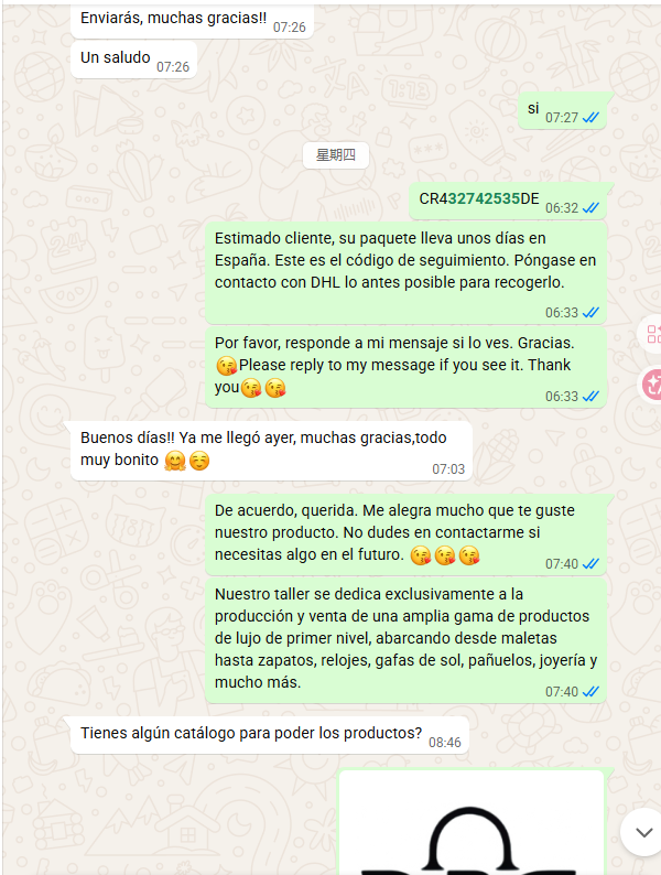 Embalaje exclusivo y detallado para cada artículo.Incluye accesorios completos: caja original, certificado de autenticidad, funda protectora anti-polvo, película anti-arañazos, lazo elegante y obsequio gratuito.Cada pieza lista para regalar, con máxima seguridad y elegancia.